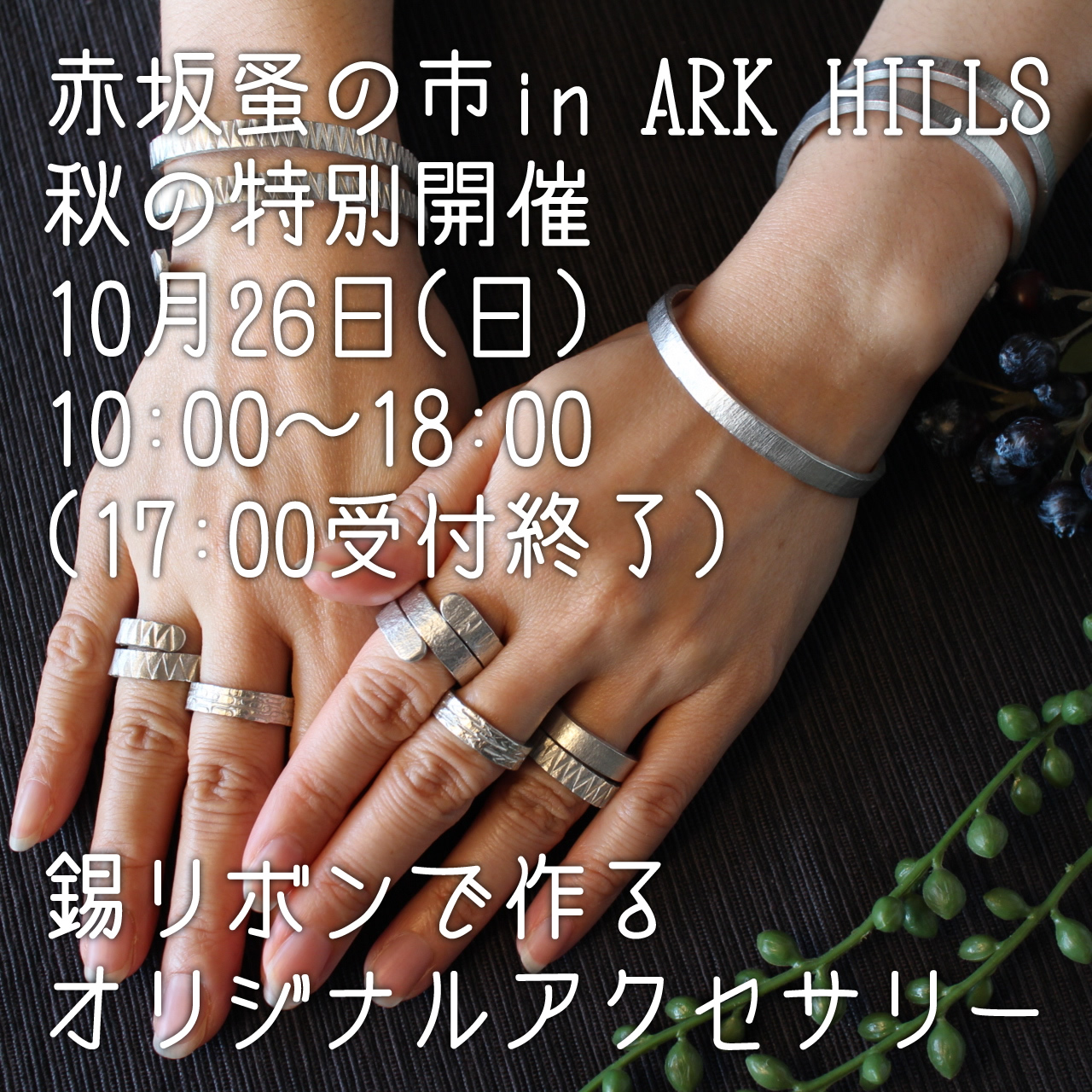 10/26(日)に赤坂蚤の市 in ARK HILLS 秋の特別開催へワークショップ出店の為「アトリエ諸岡」はお休みいたします。