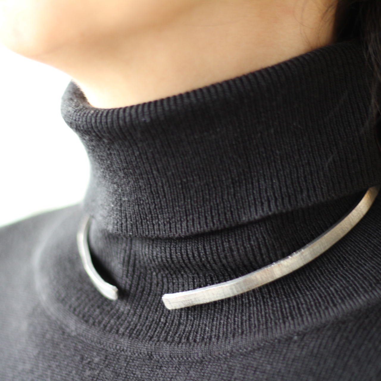 錫は簡単に曲げられるので、長さを生かしてそのままチョーカーにしたり、 二重に重ね巻きしてダブルバングル風にしたり、自由にお楽しみください。